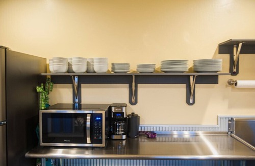 The kitchen includes all utensils, dishes & cookware needed for preparing simple meals. Coffee, tea, cocoa, creamer & basic pantry staples are also provided.