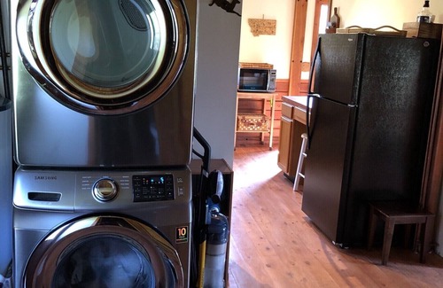 The Cabin itself sleeps 8 people and boasts plenty of room for everyone! There is a large dining room for gathering and overflow into the open living room with a cozy fireplace for those chilly nights. Kitchen is fully equipped and you’ll have access to laundry facilities. It features 3 Bedrooms and 3 Bathrooms. A king bedroom is on the main with an accessible bathroom. The “Bears Den” has a queen-size bed, two twins and a spacious attached bathroom. The “Moose Room” has two twin-sized beds and an attached bathroom. The two-level layout is perfect for groups or a multi-generational getaway.