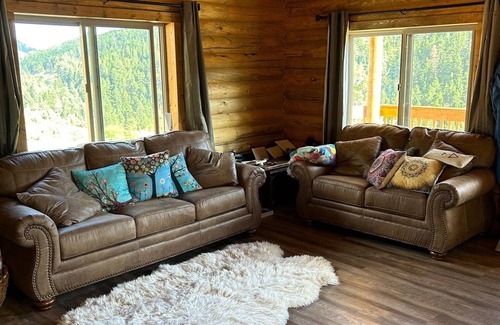 Beautiful, cozy cabin located 5 miles up a dirt road in the mountains. Amazing views overlooking Shooting Star Peak, Esthers Mtn, and Cinnabar Mtn. Fully stocked kitchen with everything you need. Two queen beds, and a sofa bed for your comfort. Starlink internet and direct TV for your entertainment needs. Close to zip-lining, horseback riding and fishing right out the front door. Located right next to Yellowstone National Park!