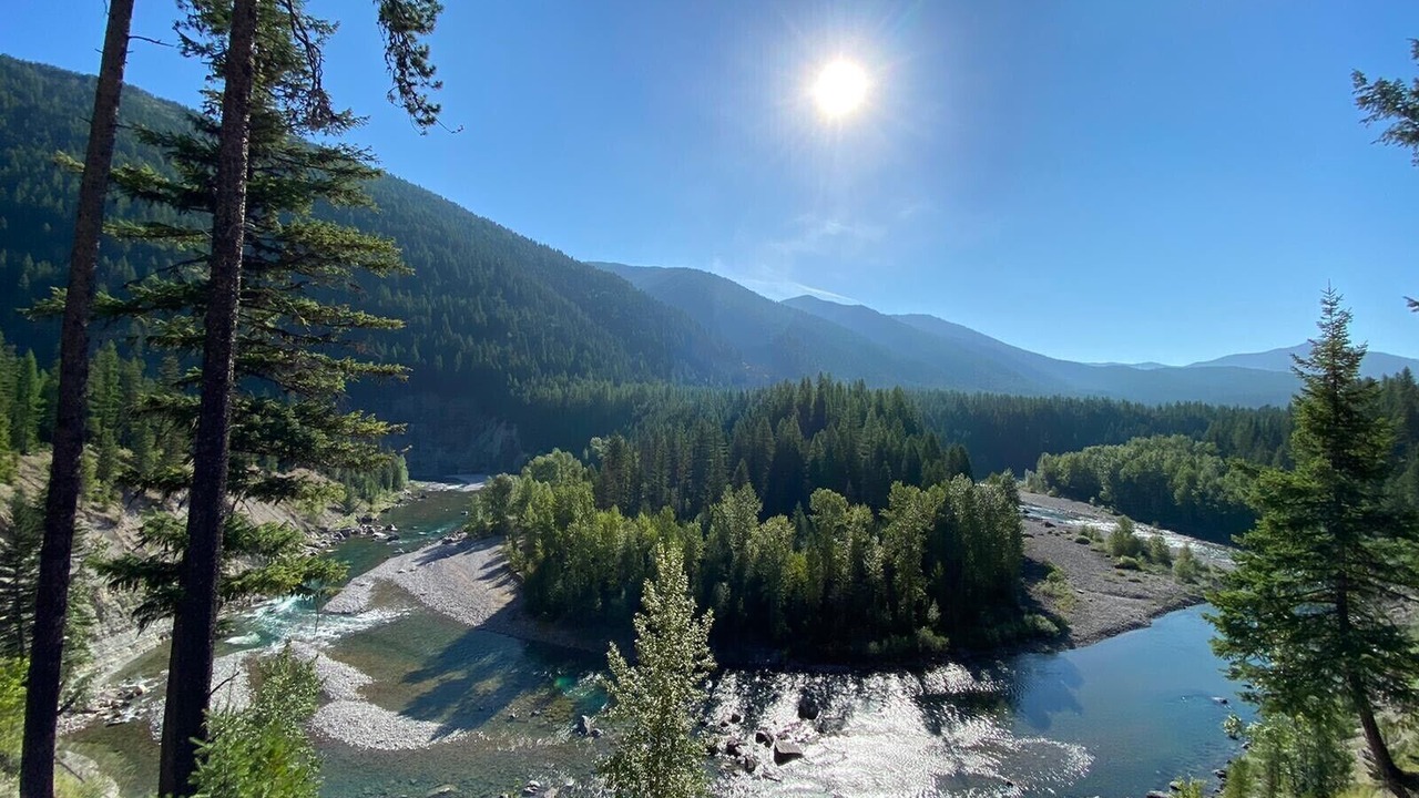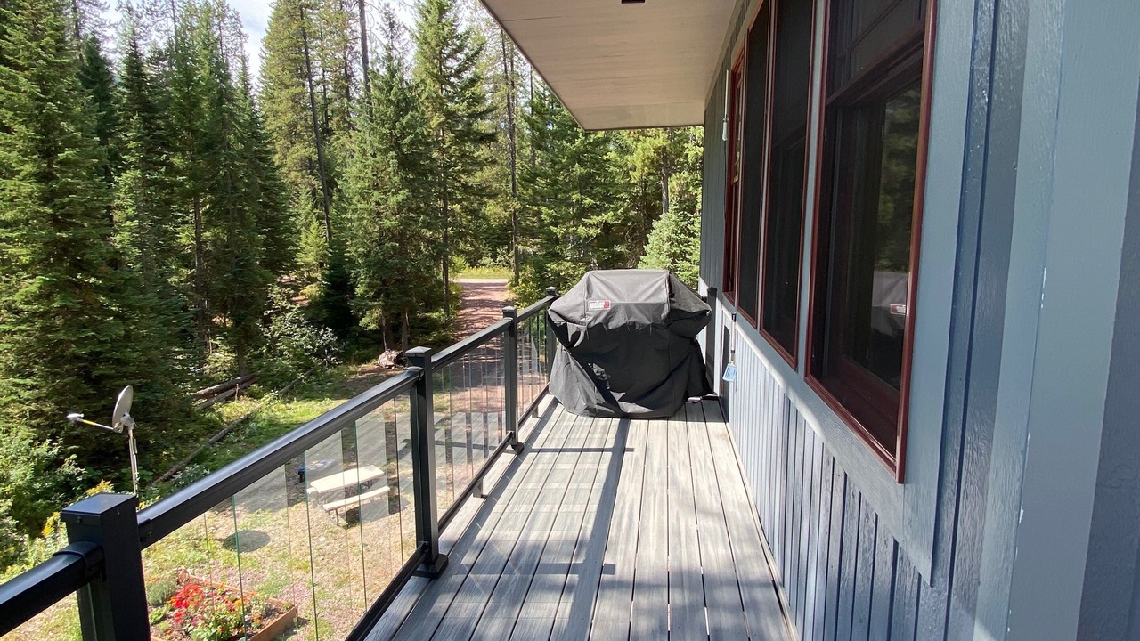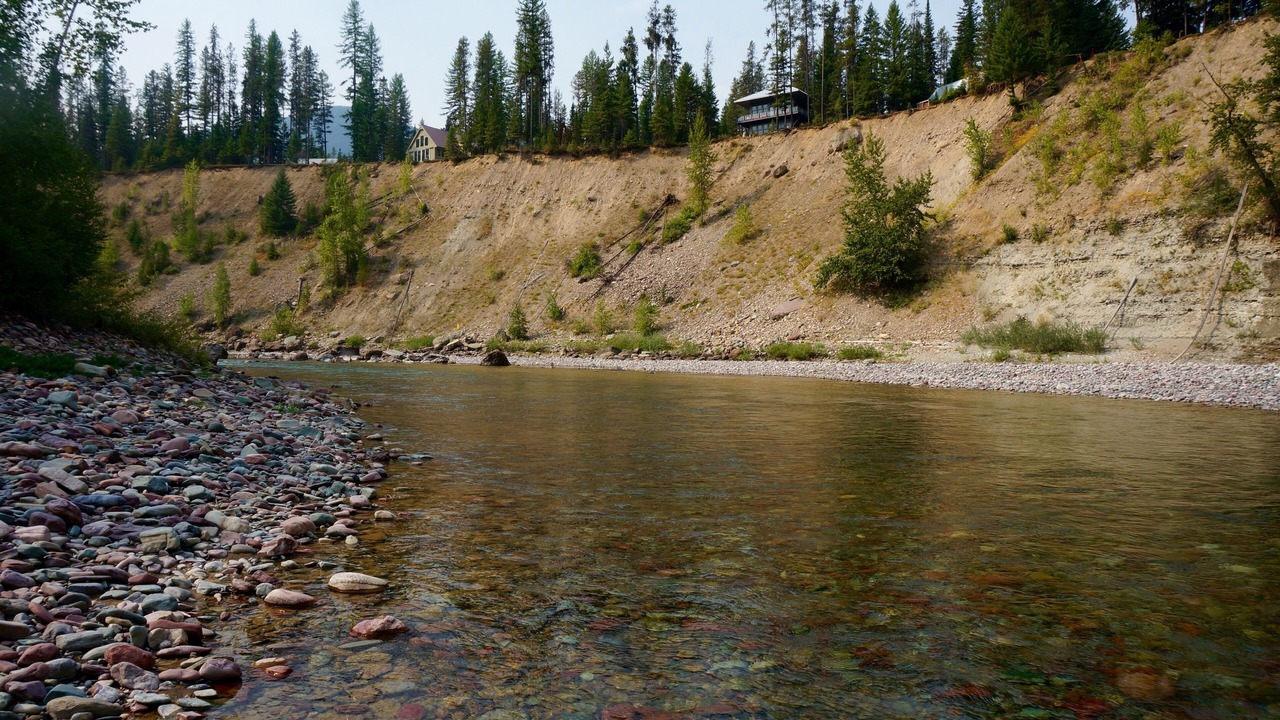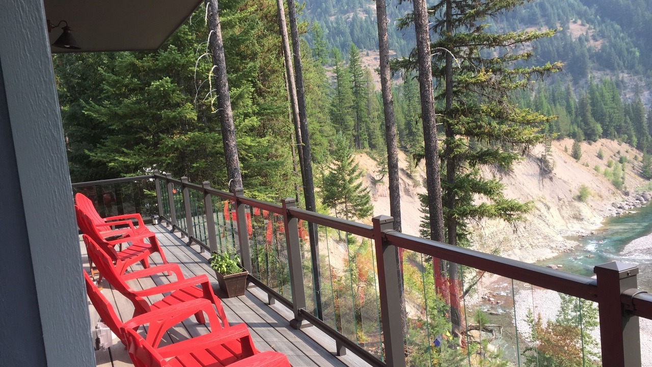 This 2 bedroom, 3.5 bath home, sits high on a bluff overlooking the Middle Fork of the Flathead River. The upper deck looks East to the river and to Scalplock Mountain Fire Lookout and Glacier National Park ! There is a path to the river, where a lovely beach provides a great place to picnic, swim or fish. Glacier National Park is directly across the river. The cabin is located half way between East and West Glacier off of HWY 2, so it makes it easy to visit both sides of the park.