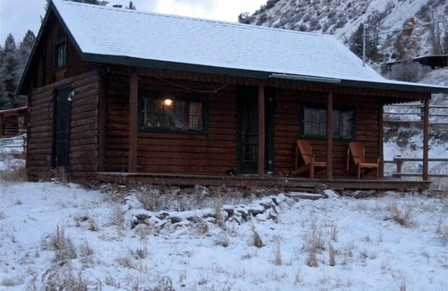 The cabin is adjacent to Cinnabar Creek, which is great for small trout fishing, and has a magnificent porch with Adirondack chairs to enjoy the beautiful mountain view. If you want to just sit back and relax you can spend hours sitting on the porch next to the creek drinking coffee or wine while reading one of our many books or just enjoying the peaceful environment. Watch deer, elk, and big horn sheep in the meadow out the front door, along the creek or on the nearby bluffs. Bears have also been seen from the porch and along the road. If you are really lucky you may even see a mountain lion. During the evening hours make sure to keep an ear open for howling wolves.