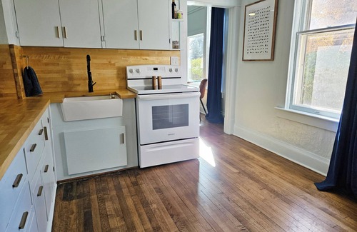 A stylish place in Lewistown, with a great kitchen! Available on a monthly basis. This main level apartment is recently updated and super convenient. Offering a bedroom for 2 and a sofa bed for additional arrangements. Enjoy a SmartTV w/apps and organic, non-toxic supplies, wifi, street parking, a common area washer/dryer, and lots of extra perks! Downtown restaurants and nightlife out your front door and within walking distance.