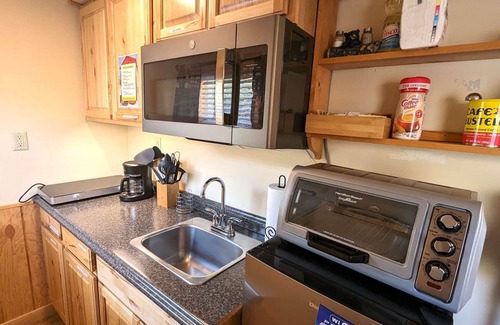 Yes! Each cabin is equipped with a full kitchen including a stove, fridge, microwave, coffee maker, toaster, and more.